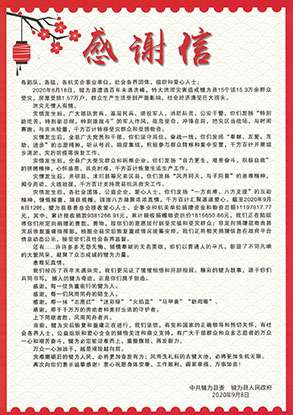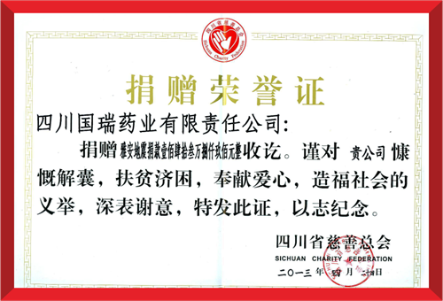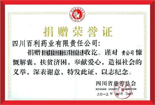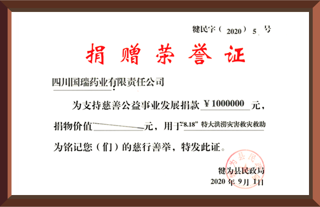 2020年8月18日,四川省犍为县遭遇百年未遇特大洪涝灾害,新爱体育官方网站-新爱体育(中国)集团国瑞药业向犍为县灾区捐赠现金100万元。